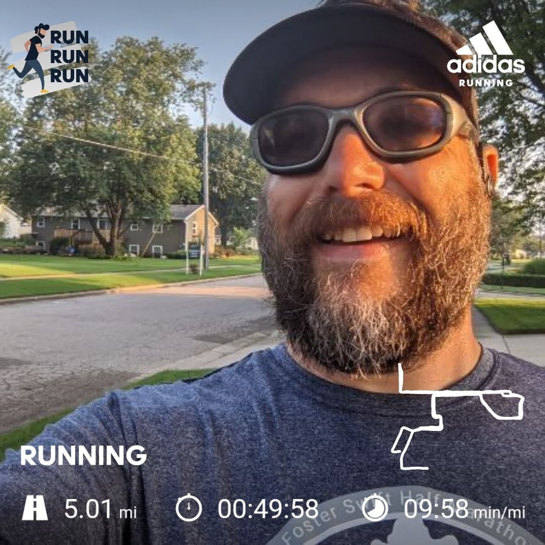 My goal for today was to simply do better than my last 5 Mile run, from last Tuesday. Given how much of a struggle I had last week I was pretty hopeful that I could make that happen. I was also hoping for a sub-10 minute/mile pace. I accomplished both which was hard but it felt great also. #HWI #KCC #Run4Water #WhyIRun #GRHalfMarathon #RiverBankRun